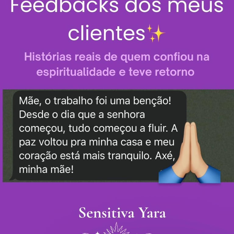 Atendimento Personalizado Cada trabalho é exclusivo e focado na sua necessidade real. Atuo na resolução de problemas amorosos, separações, bloqueios emocionais e limpeza de energias negativas. Meu objetivo é destravar sua vida e restaurar seu equilíbrio espiritual com total respeito à sua história.